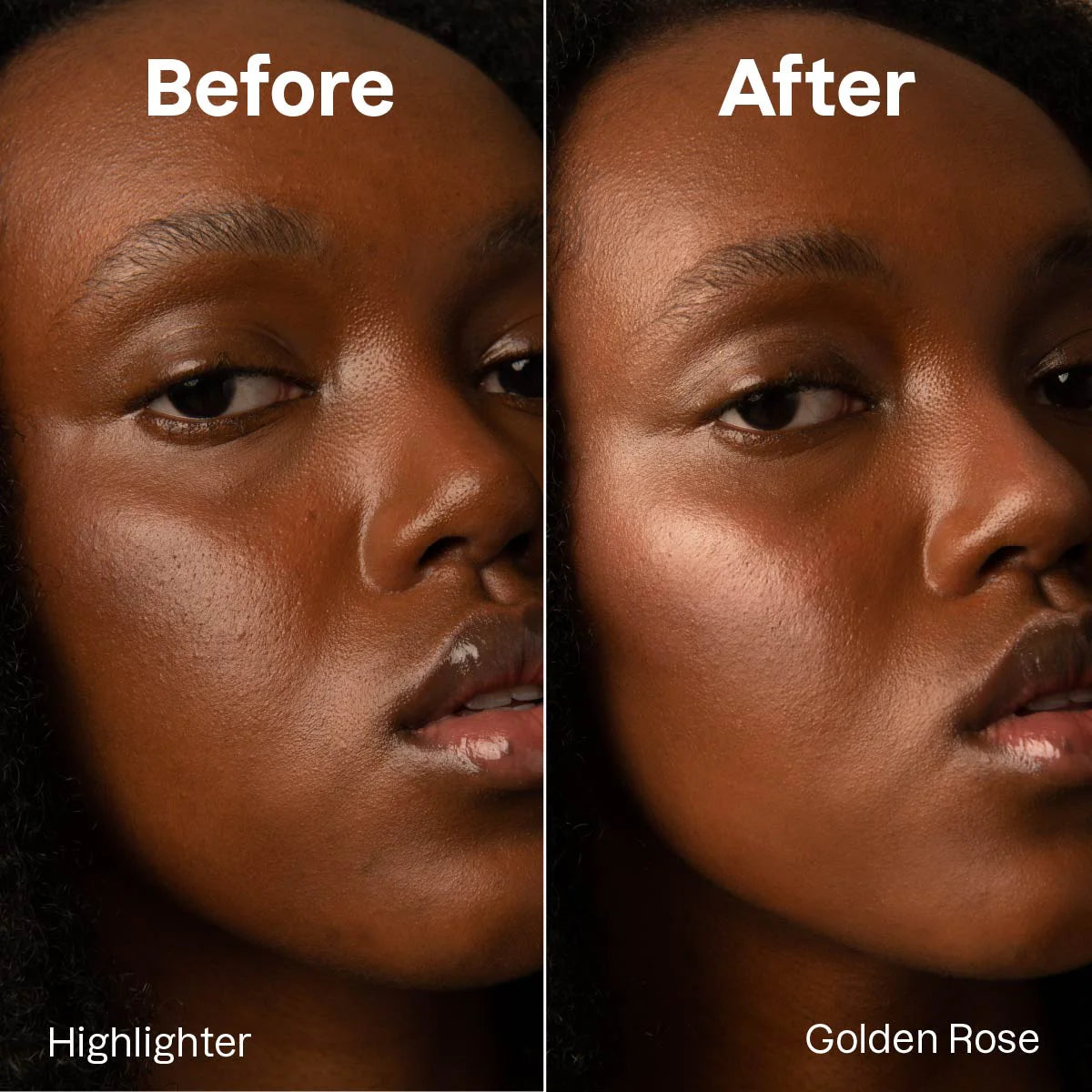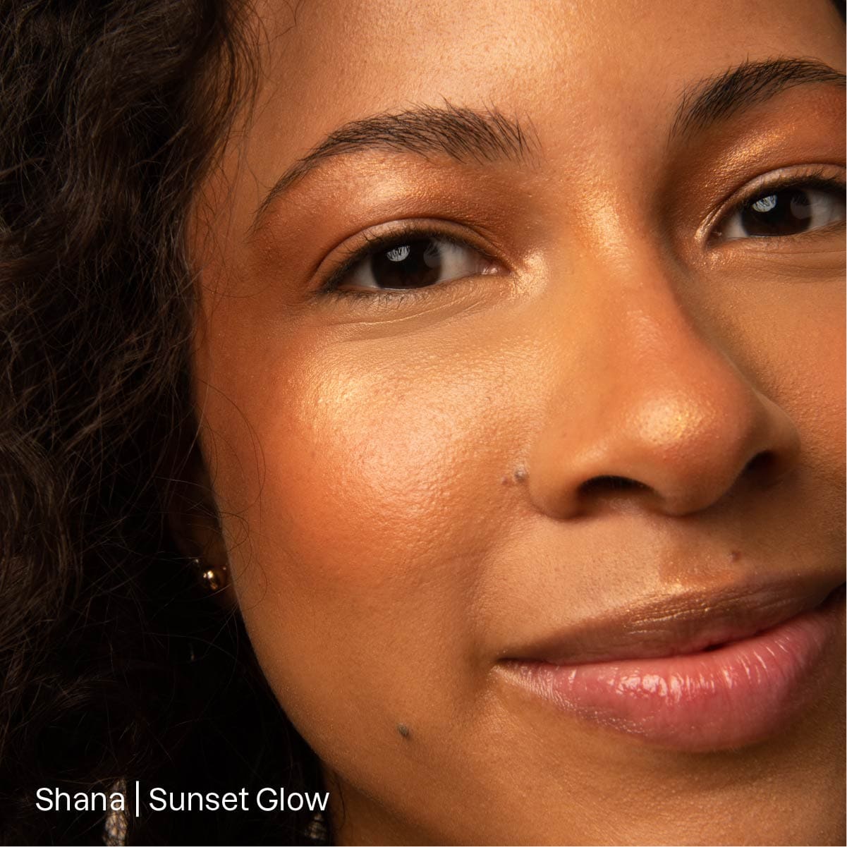Cream highlighter stick to create a glow effect and no-makeup makeup look. Light coverage for a natural complexion. Available in two shades inspired by the sunrise and sunset: Golden Rose and Sunset Glow. Innovative formula made with 98% natural origin ingredients* including active ingredients like hydrating phytoglycogen and algae extract. A perfect addition to your hybrid makeup ritual.